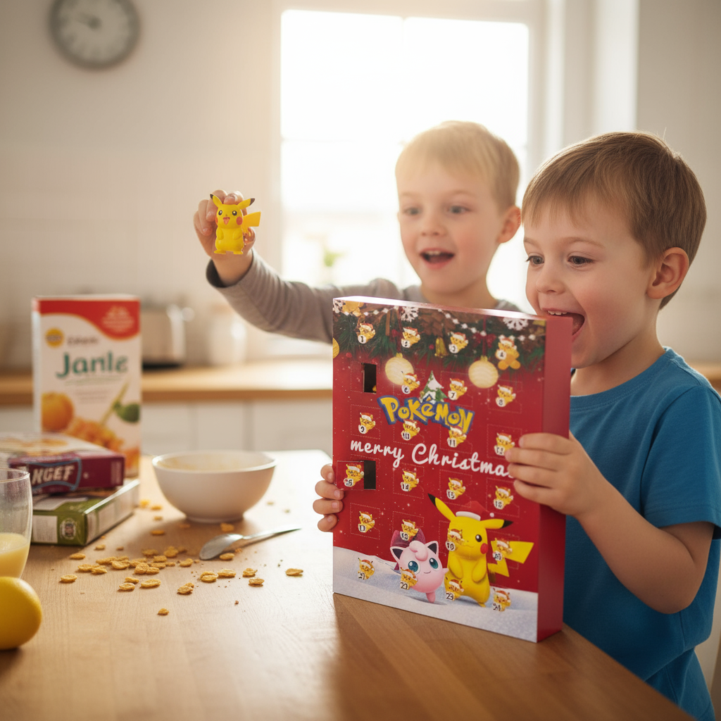 Stellen Sie sich vor: Jeden Morgen im Dezember rennen Ihre Kinder begeistert zum Kalender. Ihre Augen leuchten wie Pikachus Blitz, wenn sie das nächste Türchen öffnen. Ein neues Pokémon zum Fangen! Ein gemeinsamer Moment voller Lachen und Freude, bevor der Tag beginnt.